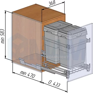 Комплектация: система утилизации с 2 ведрами (20 л каждое), направляющие Nova Pro, 2 комплекта креплений к фасаду PRCF02