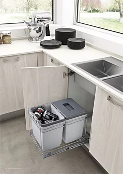 Система для утилизации мусора (2 ведра по 15 литров), направляющие Hettich плавного закрывания: PETHM402M
