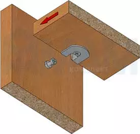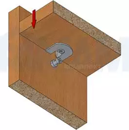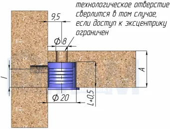 - в случае фиксации нижней полки эксцентрик можно затянуть также и сверху (для этого необходимо просверлить сквозное отверстие в полке)