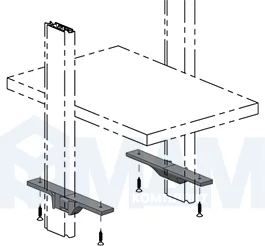 Комплектация: комплект на одну полку – 2 полкодержателя (левый и правый) для деревянных и стеклянных полок, 2 пластины против соскальзывания, 4 самореза, 2 винта-шестиграника