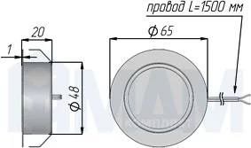 Способ установки и подключения: подготовить установочное отверстие 58 мм, закрепить в нем светильник. Затем через блок питания подключить светильник к сети 220 В.