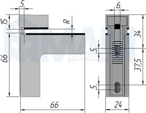 КВАДРО Менсолодержатель 24х66 мм для деревянных и стеклянных полок 4 - 40 мм, хром: SU16A ZCR