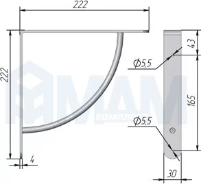 Менсолодержатель для деревянных полок L-220 мм, хром: SU50A CR