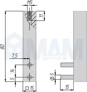 VOGUE Штангодержатель для прямоугольной штанги, торцевой, темная бронза, крепление к полке: TA0213SBR