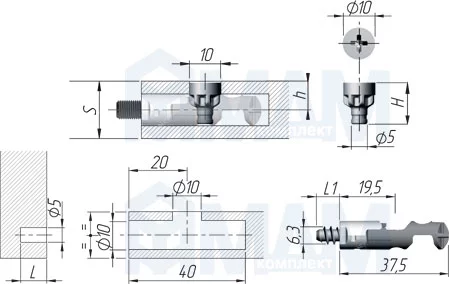 - используется для крепления к боковине или соосного крепления для плит от 16–25мм;