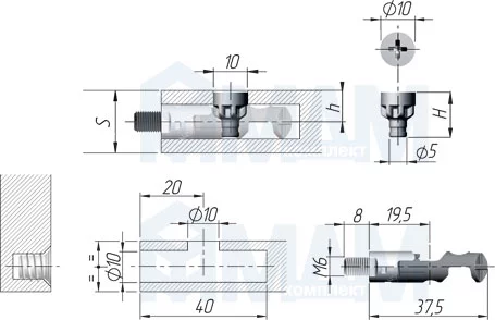 - используется для крепления к боковине или соосного крепления для плит от 16–25мм;