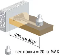 ![]() | Внимание! Убедитесь, что стена в месте фиксации полки соответствующего качества. Используйте крепежную фурнитуру, соответствующую конструкции стены. |