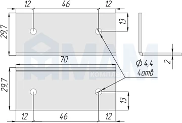 Уголок монтажный, Д=30 мм, Ш=70 мм: У 157