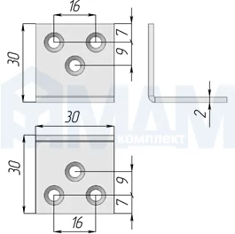 Уголок монтажный, Д=30 мм, Ш=30 мм: У 393