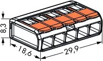 221 Клемма на пять подключений с рычажком, для проводов 0.14-4.0 кв.мм, ток 32А: WA-221-415