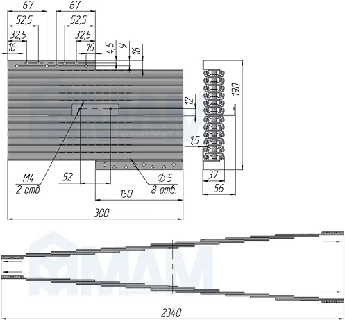 Механизм бесцарг. мультисекционный, 6 секций: WF-6S-300/1321