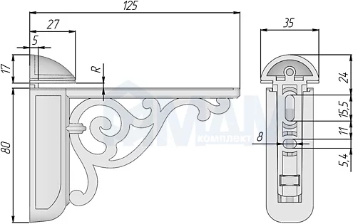 VENICE Менсолодержатель для деревянных и стеклянных полок 4 - 40 мм, L-125 мм, белый матовый: WRM.805.125.00N3