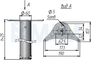 Опора для стола, D60, H870+25 мм, хром, 1шт.: X4RG 870 CR 1