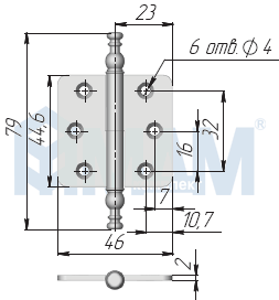 Петля карточная бронза (правая): ZS1002-П