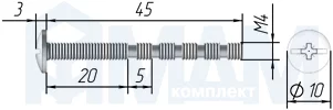 Винт с полукруглой головкой под крест, M4 X 45, универсальный, никель: ZZ150 M4 X45 IB/ШТ
