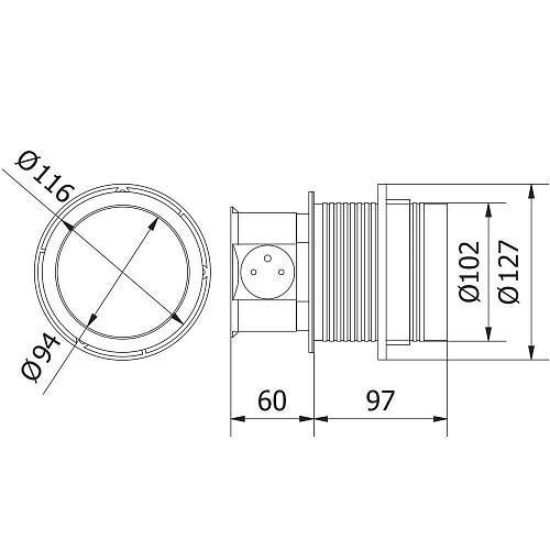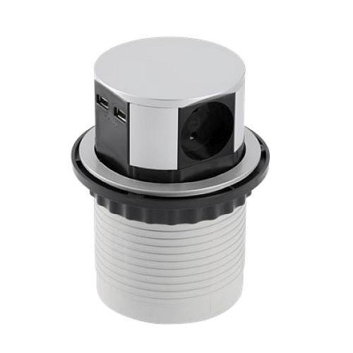 GTV: Удлинитель круглый врезной 3 розетки COMFORT (Schucko) 2xUSB 2,4A, провод 1,5м, алюминий: AE-BPW3S100U-53