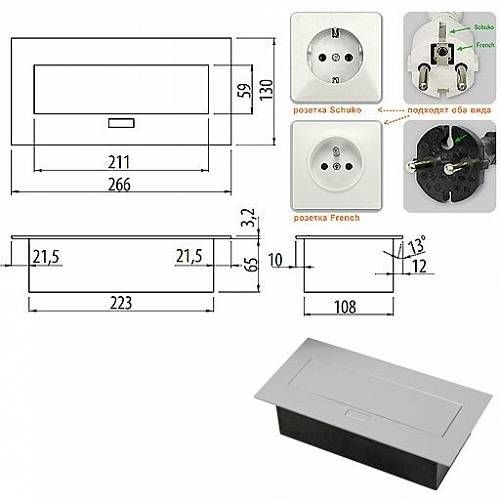 GTV: Удлинитель для офиса - Разъем расширения рабочего стола Schucko х 3, Алюминиум AE-PB03GS-53