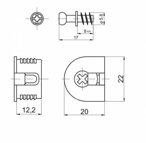GTV: Эксцентриковая стяжка для полок 16мм + ДЮБЕЛЬ ВВИНЧИВ. 8мм полку можно установить только сверху, пластмасса, коричневая MM-FI20X6X7-PL30