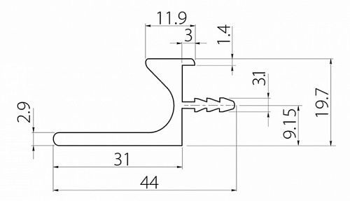 Ручка врезная "L" L-3,5 м, черный матовый - профиль, монтируемый в предварительно высверленный паз в торце фасада мебельной конструкции.