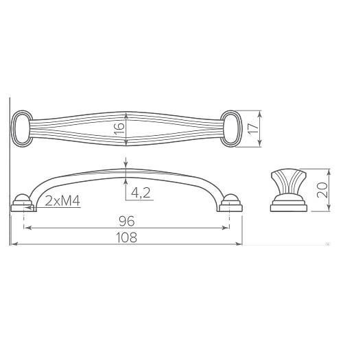 GTV: Ручка мебельная 1239 C=96 мм, старое золото UZ-L01239-S4