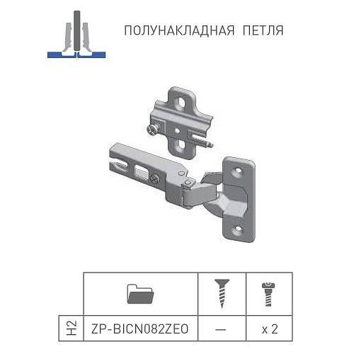 GTV: Петля полунакладная GTV Ø35 с ответной планкой H=2 без евро шурупа, сверление - 45мм вес-60 гр. ZP-BICN082BE