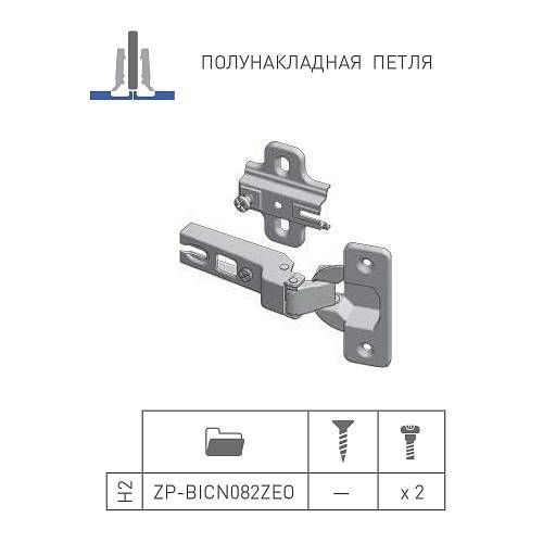 GTV: Петля полунакладная GTV Ø35 с ответной планкой H=2 с евро шурупом, сверление - 45мм вес-60 гр. ZP-BICN082ZE