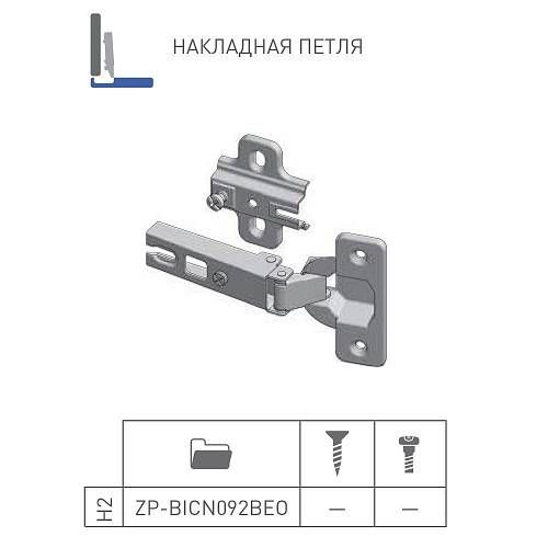 GTV: Петля накладная GTV Ø35 с ответной планкой H=2 без евро шурупа, сверление - 45мм вес-60 гр ZP-BICN092BE
