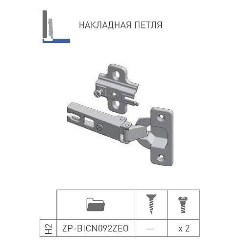 GTV: Петля накладная GTV Ø35 с ответной планкой H=2 с евро шурупом, сверление - 45мм вес-60 гр. ZP-BICN092ZE