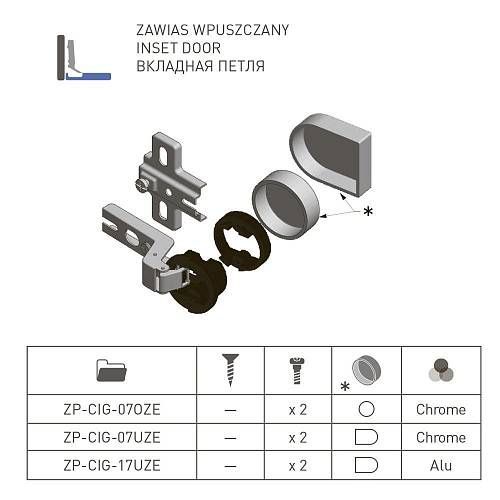 GTV: Петля GTV для стекла + ответная Планка с евро шурупом и заглушка круглая хром ZP-CIG-07OZE
