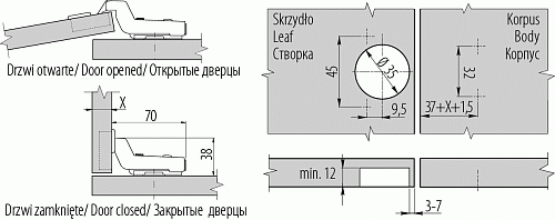 - Регулировка положения дверцы по глубине, ширине и высоте.