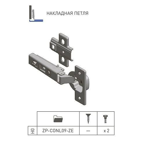 GTV: Петля накладная с клипом GTV H=2 с евро шурупом ZP-CONL09-ZE