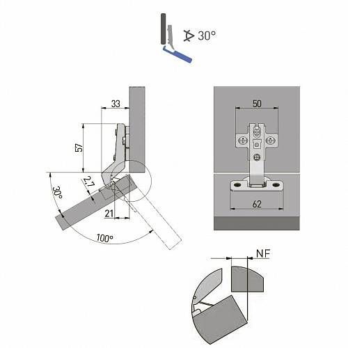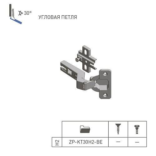 GTV: Петля GTV 30° + Планка Н=2 без евро шурупа ZP-KT30H2-BE