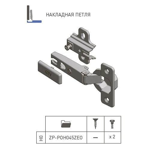 GTV: Петля накладная с пружиной обратного действия H=0 45мм с евро шурупом ZP-POH045ZEO