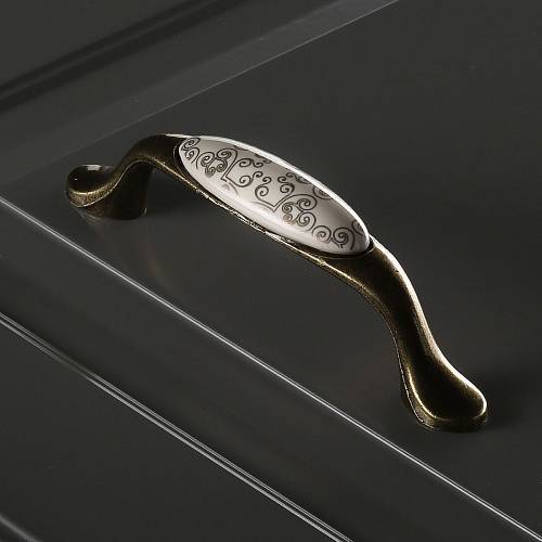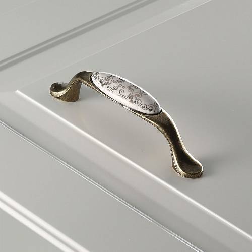 Мебельная фарфоровая ручка C=96мм, старое золото/золотой орнамент GTV UP-WP0728-PC-04