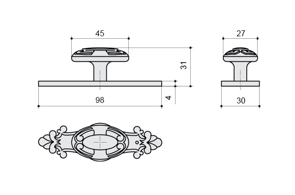Ручка-кнопка с накладкой, отделка бронза античная