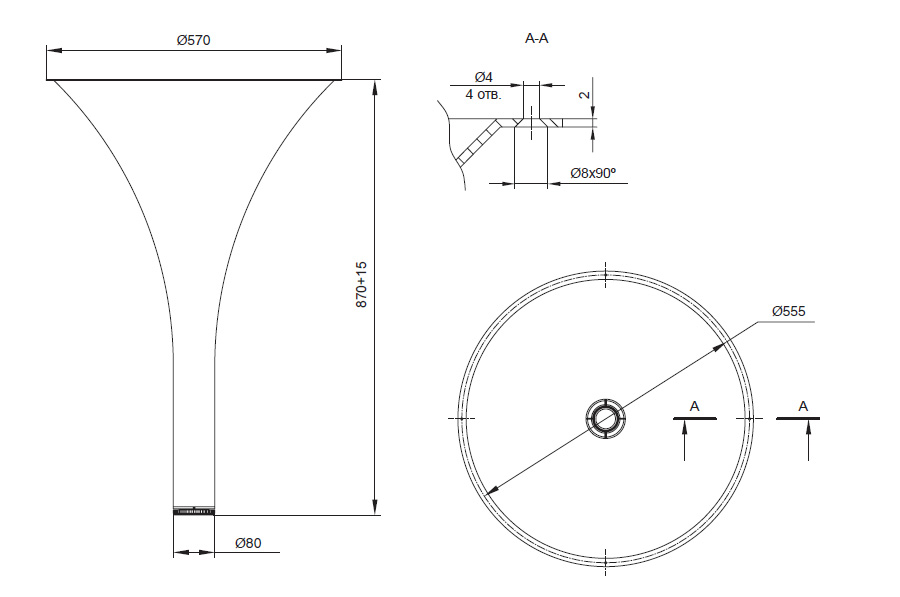 Нога для стола Armstrong d.80/570, h.870, отделка черный матовый |
