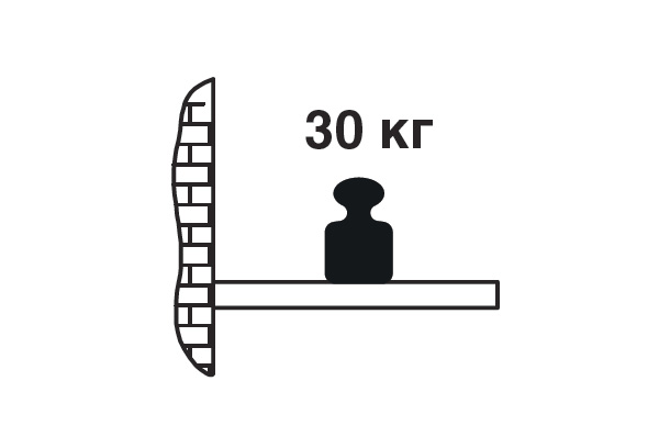 - Максимальная нагрузка указана на один менсолодержатель при условии, что фиксация к стене произведена надлежащим образом, а так же при равномерном распределении нагрузки.