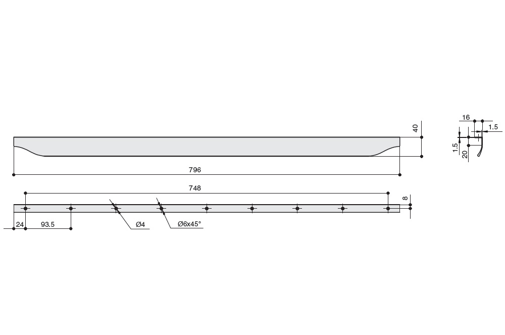 Ручка-скоба L.796мм, отделка сталь шлифованная