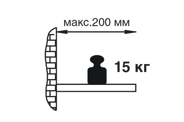 - Максимальная нагрузка указана на два менсолодержателя при условии, что фиксация к стене произведена надлежащим образом, а так же при равномерном распределении нагрузки.