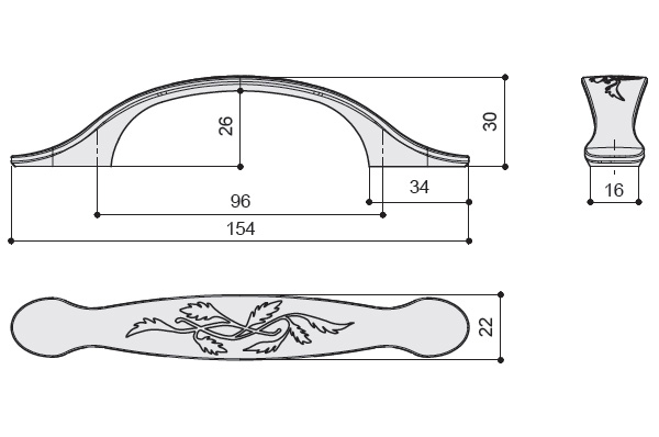 Ручка-скоба 96мм, отделка бронза античная |