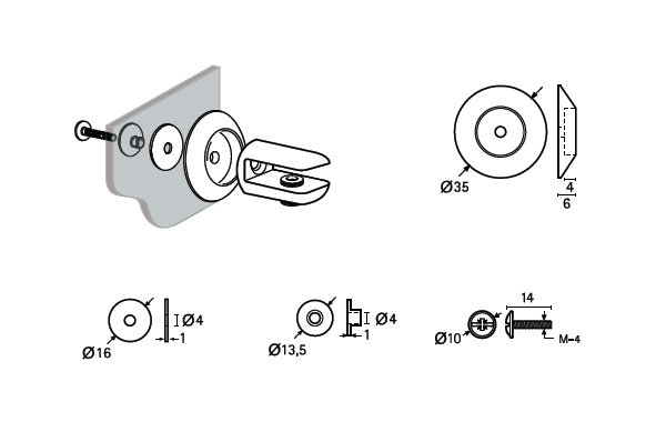 Полкодержатель П-образный для стекла 3-6мм, отделка хром глянец