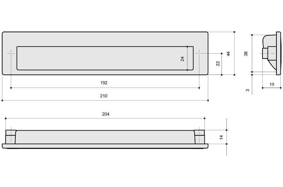 Ручка врезная 192мм, отделка белый глянец + хром глянец