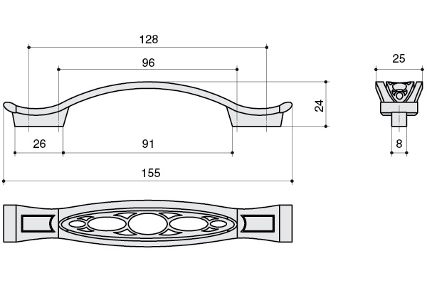 Ручка-скоба 128-096мм, отделка бронза античная французская |