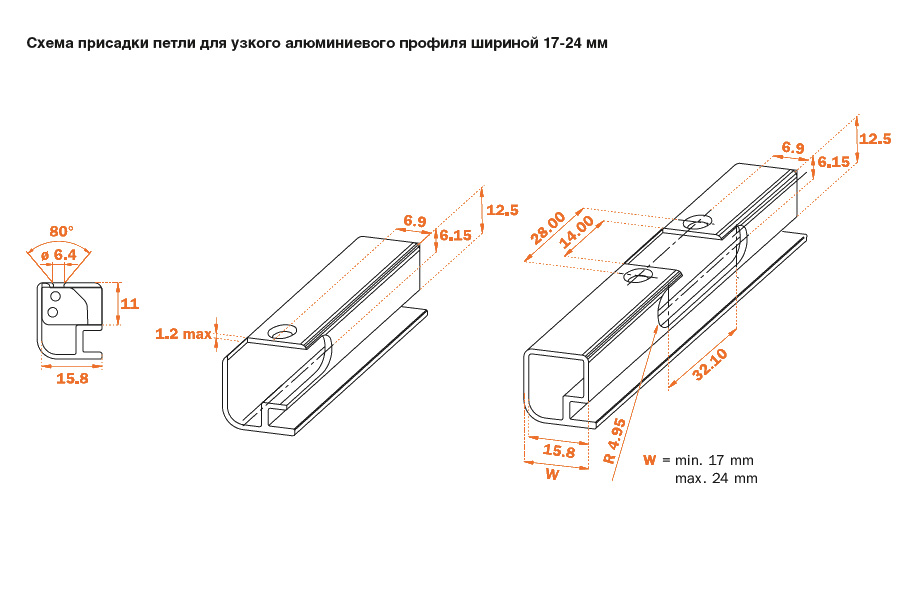 Петля 105" вкладная для алюминиевой рамки