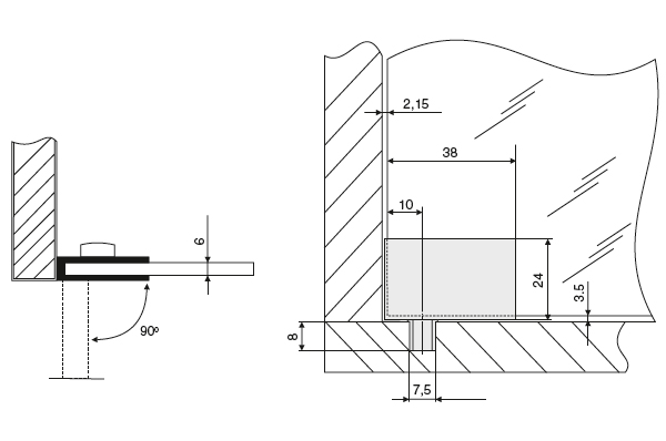 Петля 90" для стекла, отделка хром матовый, правая