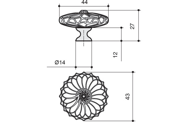 Ручка-кнопка, отделка никель + горный хрусталь