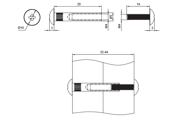 Стяжка межсекционная d.5мм (29+15), отделка никель (за 100 штук)