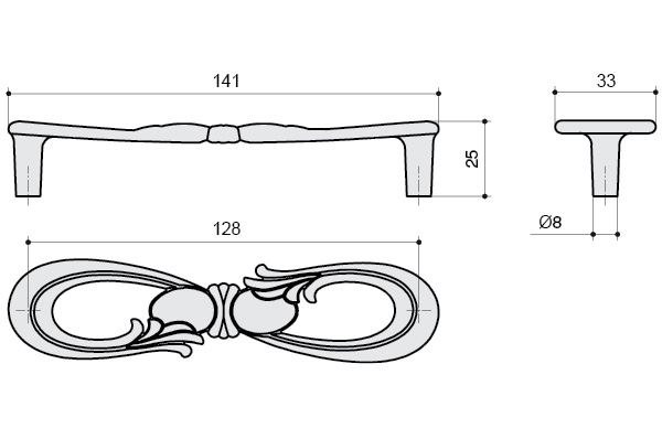 Ручка-скоба 128мм, отделка старое серебро с блеском |