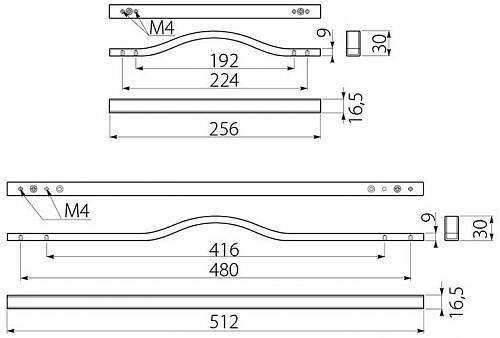 Ручка алюминивая DOPPIO C=192мм, хром GTV UA-DOPPIO192-01