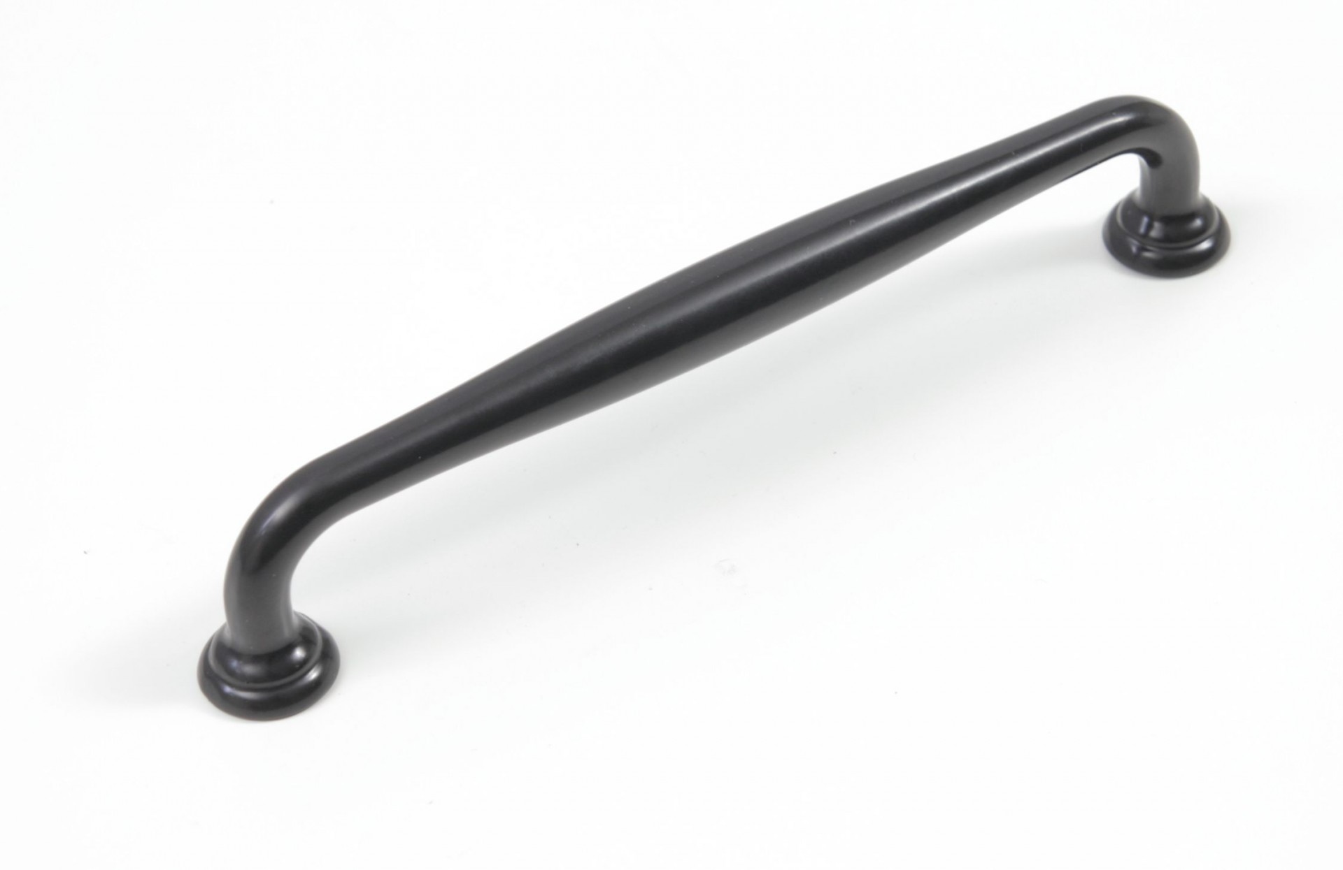 Оригинальность этой ручки не бросается в глаза, но и не остается незамеченной. Своеобразие формы этой ручки-скобы заключается в небольшом расширении к центру и многоуровневом дизайне оснований для крепления.
